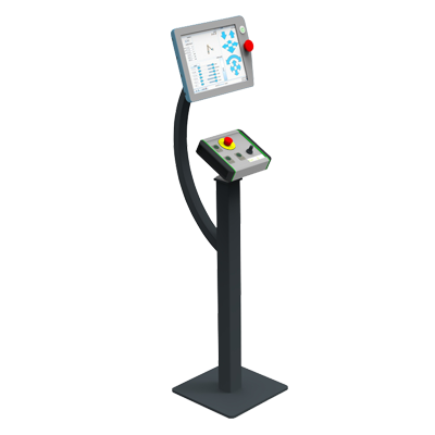 Quick-start knoppen (start/stop/reset/noodstop/snelheidsregelaar) Optioneel: keuzeschakelaar voor 2-stationsbediening Inclusief ergonomische houder voor het UR-teachpendant
