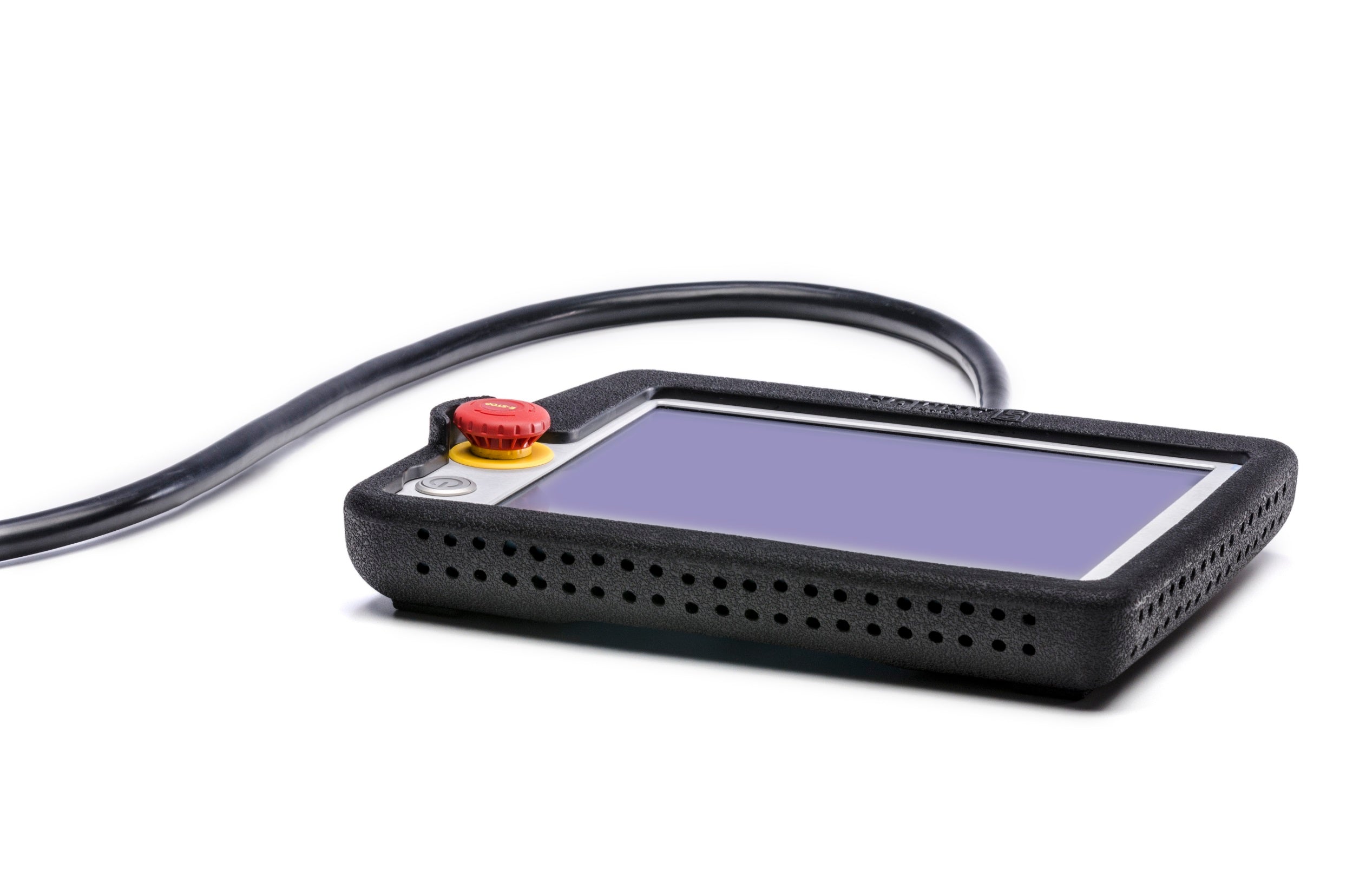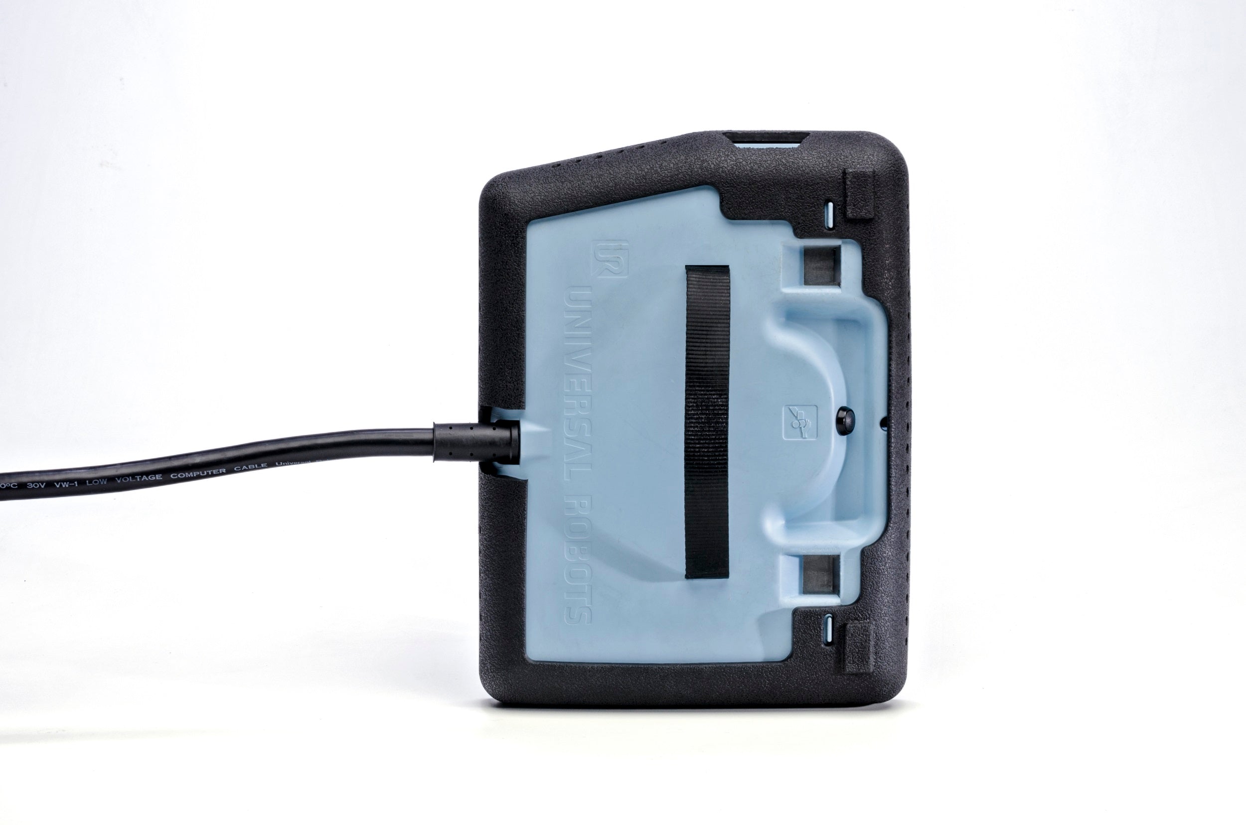 Deze bumper is gemaakt van Santoprene™-rubber en biedt uitstekende bescherming voor het UR-Teachpanel als deze per ongeluk valt. Santoprene™ is immuun voor water en de meeste reinigingsmiddelen op waterbasis en heeft een “uitstekende” weerstand tegen de meeste industriële smeermiddelen, koelvloeistoffen en snijvloeistoffen.