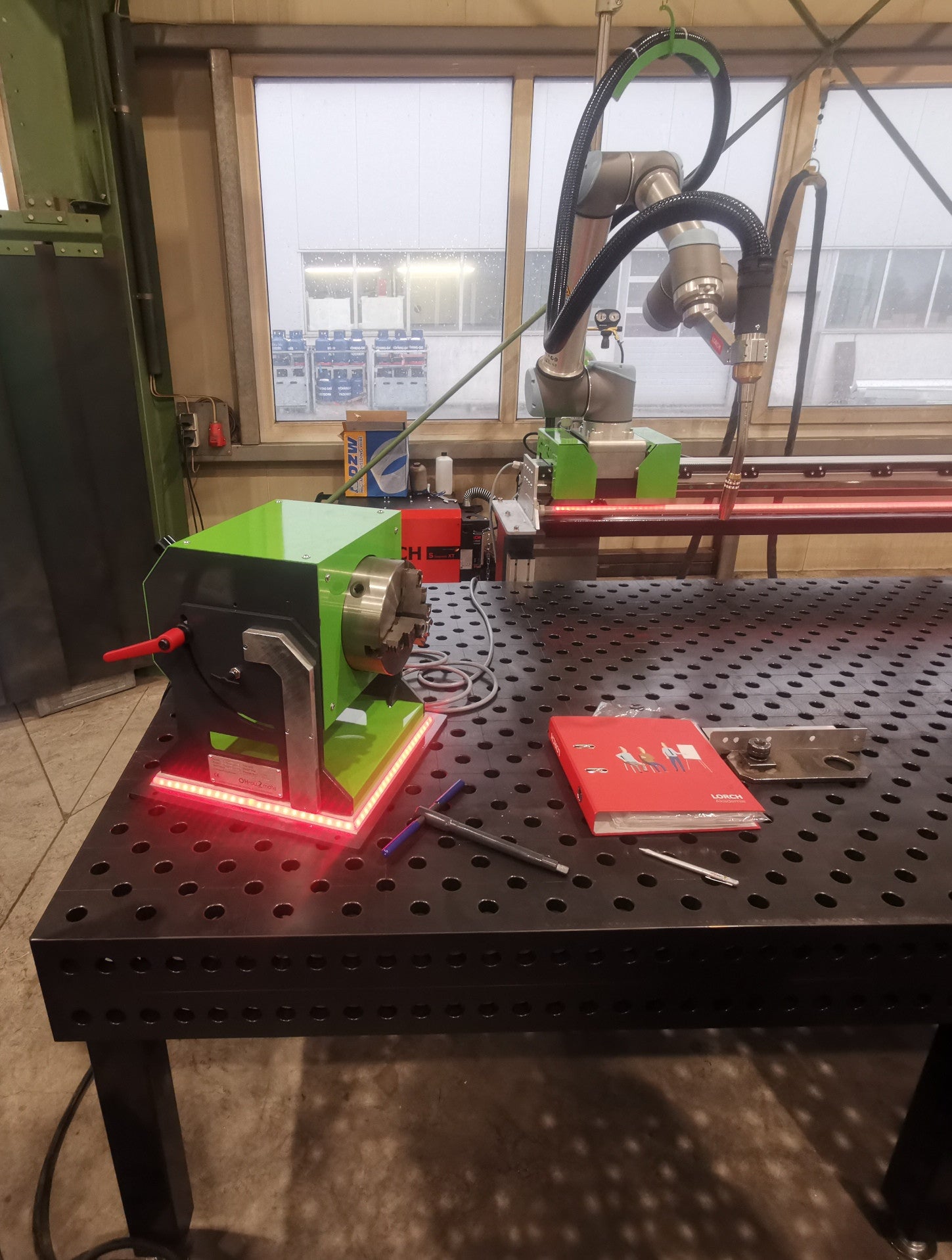De 2-assige positioner rotatieONE voor de Universele Robot is een consequente uitbreiding voor uw robot voor MIG/MAG/WIG-lassen, autogeen/plasmasnijden of andere positioneringstaken. Het laadvermogen van de extra as bedraagt 120 kg of 240 kg en overtuigt door een compact ontwerp en een stabiele en hoogwaardige constructie. Door middel van een 200 mm 3-klauwplaat worden componenten snel en altijd centrisch vastgeklemd. Door de holle as kan de positioner optioneel worden voorzien van een formeergastoevoer, ook zijn extra in-/uitgangen voor armaturen e.d. op de buitenas mogelijk. Voor integratie zijn slechts enkele aansluitingen in de robotschakelkast en kleine aanpassingen in de robotinstallatie nodig. Daarna kan de as worden aangestuurd door middel van meegeleverde commando's uit het robotprogramma. Er worden voorbeeldprogramma's meegeleverd om de eerste stappen te vereenvoudigen. Het is mogelijk om meerdere klepstandstellers op uw robot aan te sluiten.