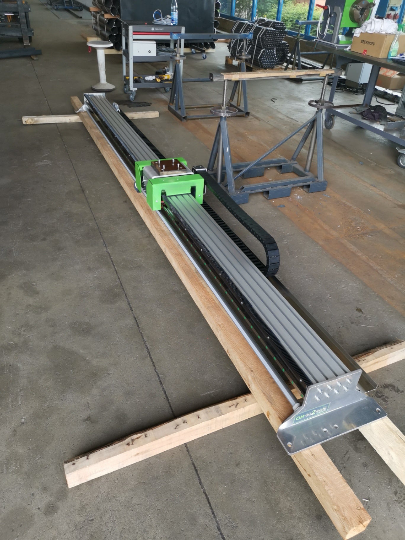 De positioneringsas is klaar voor gebruik in vele toepassingsgebieden, bijvoorbeeld voor lassen, snijden, handling van componenten of voor het uitrusten van één of meerdere machines. De extra as slideONE beweegt de robot met een snelheid van maximaal 300 mm/s. De herhaalbaarheid van de as is +- 0,05 mm.